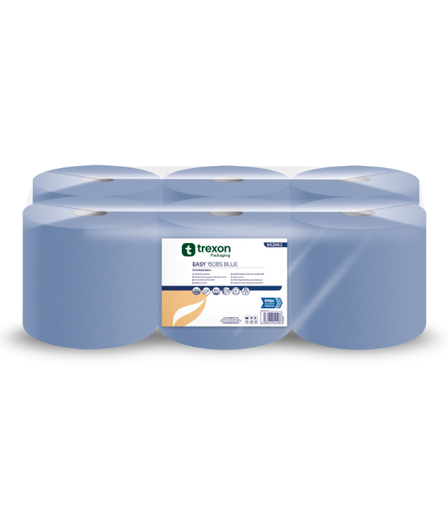 The Easy 150 BS Blue Centre Pull Wipers are designed for efficient, hygienic dispensing in commercial or high-traffic hygiene settings. Each roll features a centre-pull dispensing mechanism, allowing individual sheets to be pulled from the middle of the roll — reducing waste and contact, and promoting better hygiene.